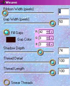 Dritter Schritt: Eyecandy3.1/Weave mit folgeneden Einstellungen (Farbe anbei in rosa)